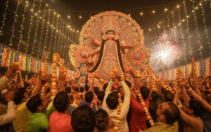 In Kolkata, Durga Puja is not just about worship—it’s about celebration, art, and community spirit.