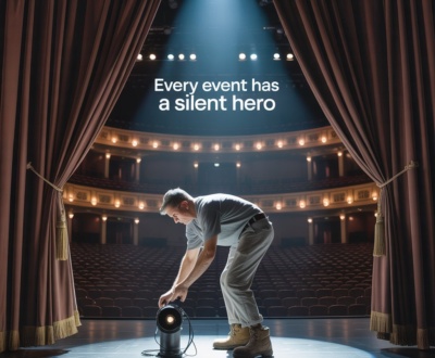 Event planners arrange lighting, sound systems, cameras, and stages if needed.